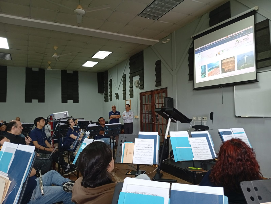Panamá, 18 de junio de 2025.- Los músicos de la Banda Republicana participaron de una jornada de actualización musical dictada por el músico brasileño Marcelo Jardím, actual director artístico y profesor de la Dirección de Banda y Práctica Orquestal de la Escuela de Música de la Universidad Federal de Río de Janeiro (UFRJ), en colaboración con el Ministerio de Cultura y la Escuela Juvenil de Música.