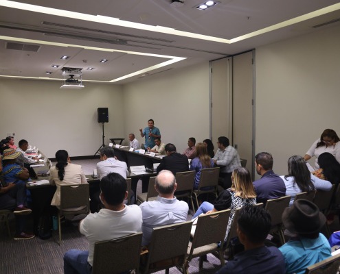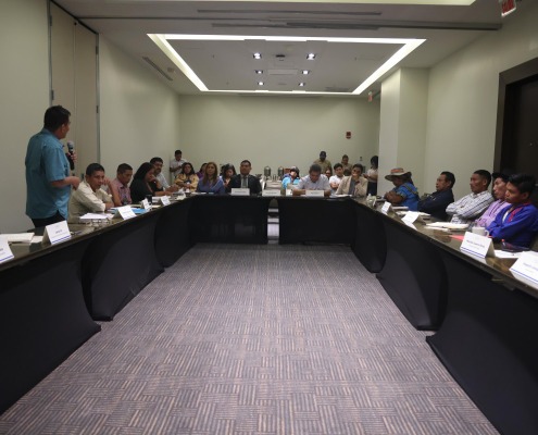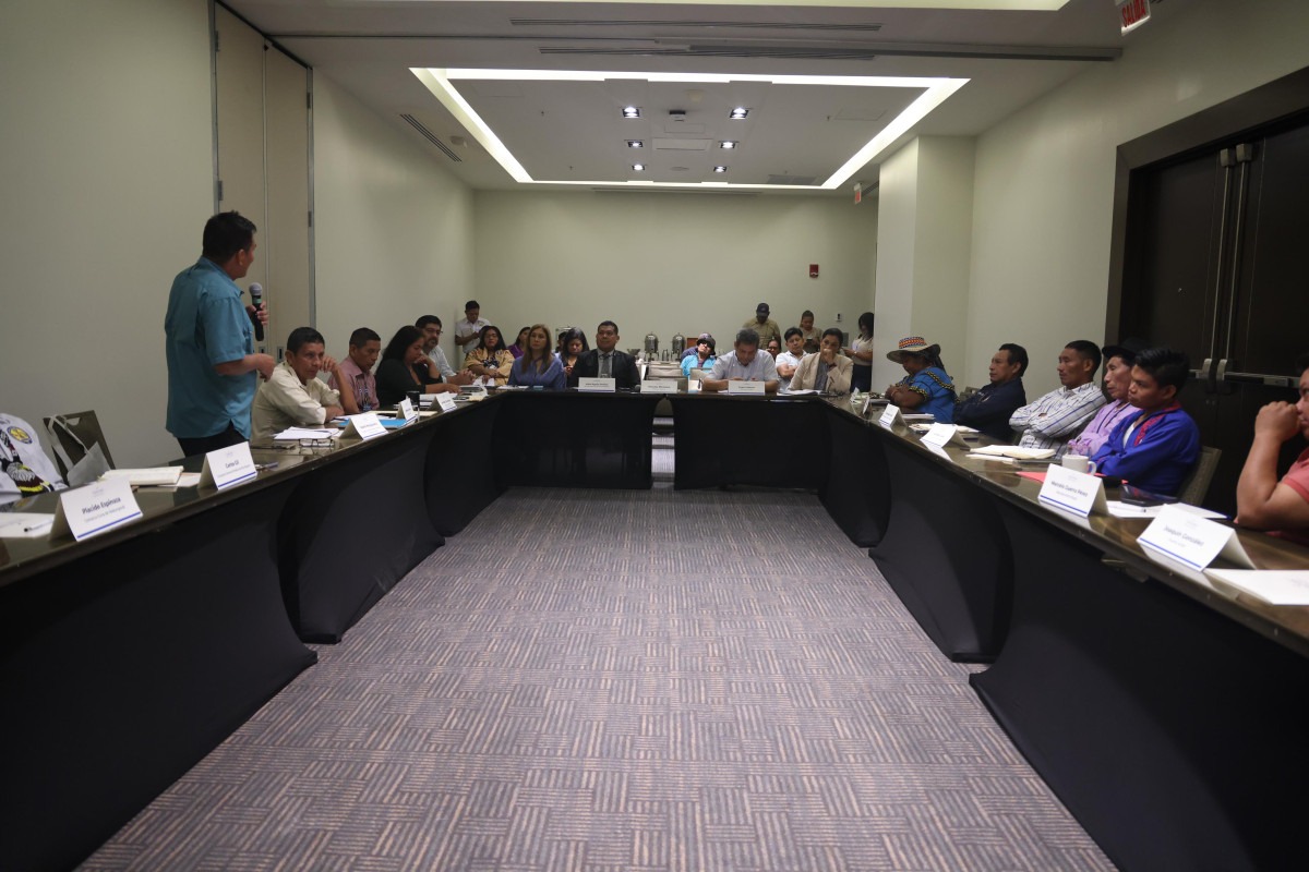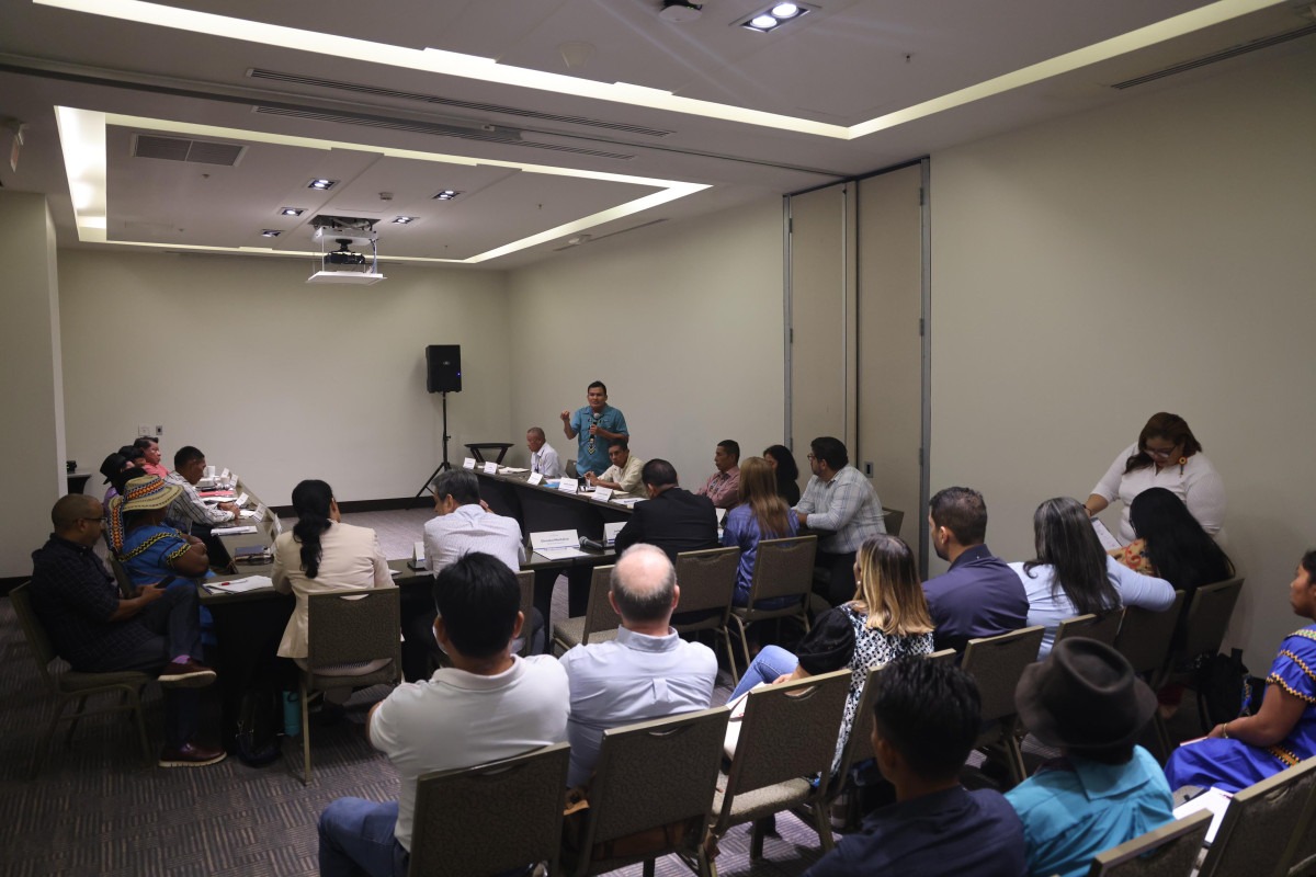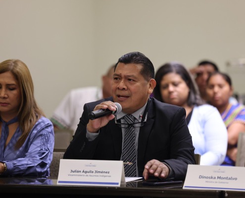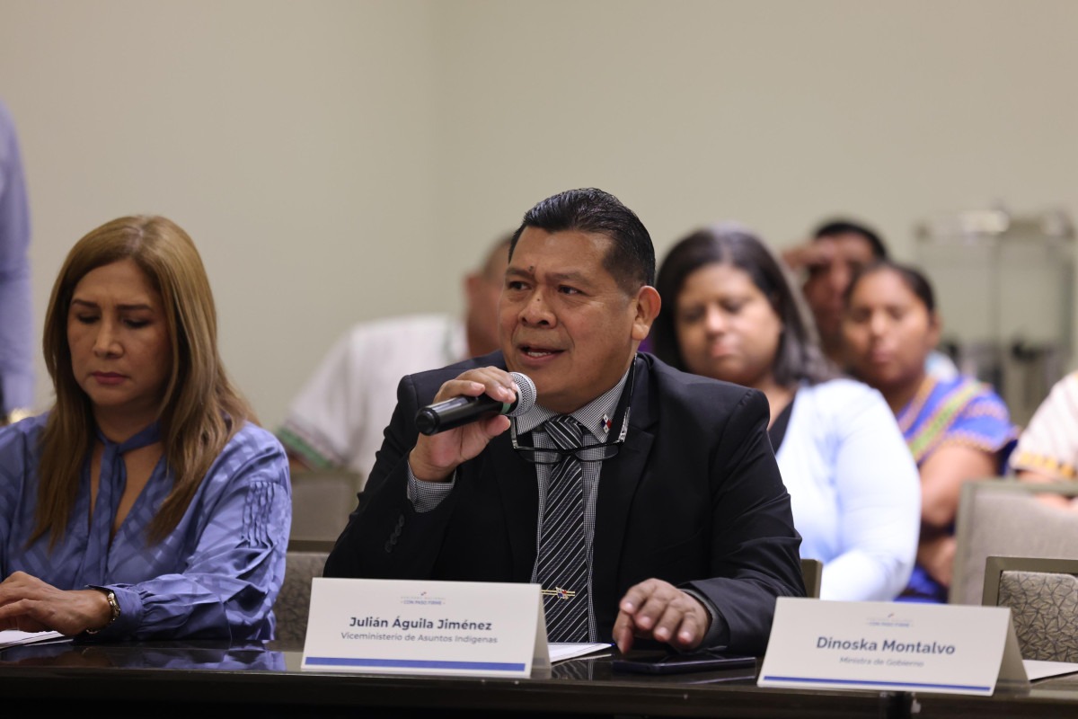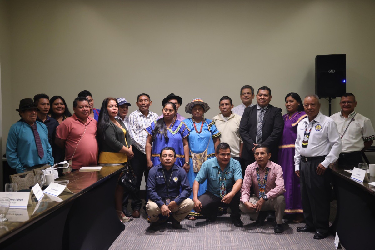 Autoridades del Ministerio   de Gobierno, (Mingob) encabezadas por el viceministro de Asuntos Indígenas Julián Águila y el Secretario General, Ángel Calderón, explican a los 12 jefes de los territorios indígenas, los avances del Plan de Desarrollo Integral de los Pueblos Indígenas   en estos primeros días de la administración del Presidente José Raúl Mulino .