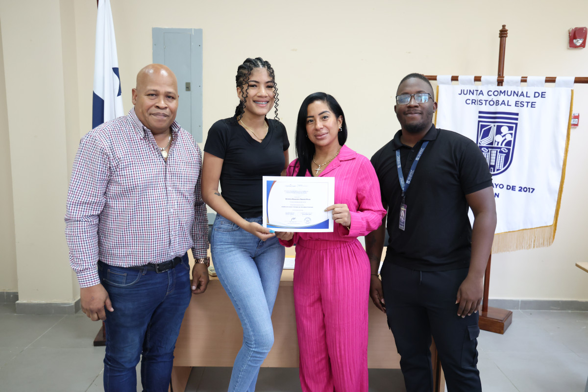 Durante la jornada, se participó en el acto de certificación del curso de Diseño de Cejas y Pestañas realizado en la Junta Comunal de Cristóbal Este, donde jóvenes culminaron con éxito esta capacitación que les abre nuevas oportunidades de crecimiento personal y laboral.