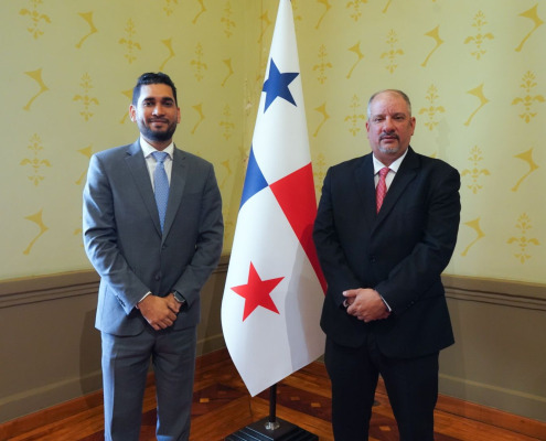 Panamá, 5 de junio de 2025.- El director de Planificación del Ministerio de Gobierno (Mingob), José Pino, recibió este jueves en el histórico Salón de Los Medallones, al diputado de la República de Panamá, Jorge Herrera del circuito 2-4, quien solicitó apoyo para la construcción de cinco Casas de Gobierno en el distrito de Aguadulce así como la construcción del primer Centro Urbano de Bienestar y Oportunidades (Cubo).