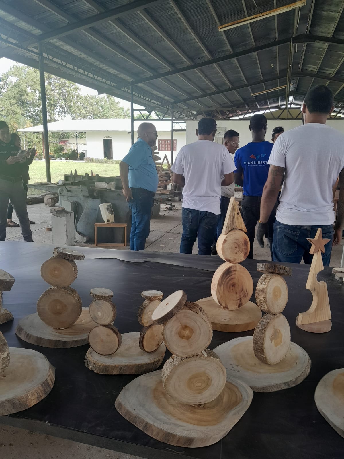En el Centro Penitenciario de Llano Marín, Torregroza conversó con los privados de libertad que laboran en el taller de ebanistería, donde se elaboran piezas únicas destinadas al “Bazar Los Retazos Tienen Magia”. También observó los proyectos desarrollados por las privadas de libertad en cerámica fría, así como la confección de escapularios, llaveros navideños y otras artesanías.