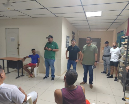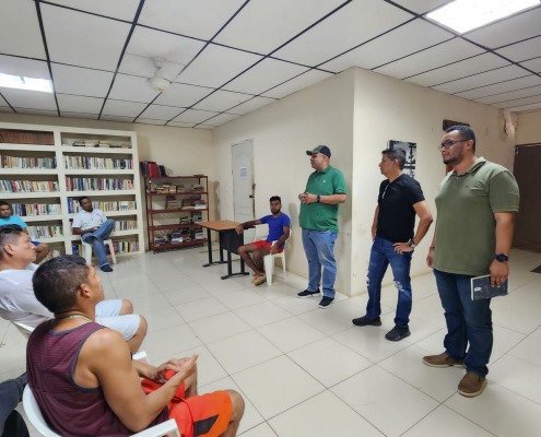 Panamá, 12 de octubre de 2023. – Con el objetivo de reforzar la integración social del privado de libertad, así como de sus familiares, el director General del Sistema Penitenciario, Euclides Joel Castillo G., realizó un recorrido por el centro de rehabilitación El Renacer con la Fundación Deporte y Cultura, quienes de manera conjunta con el Sistema Penitenciario realizan clínicas sociales de resocialización.