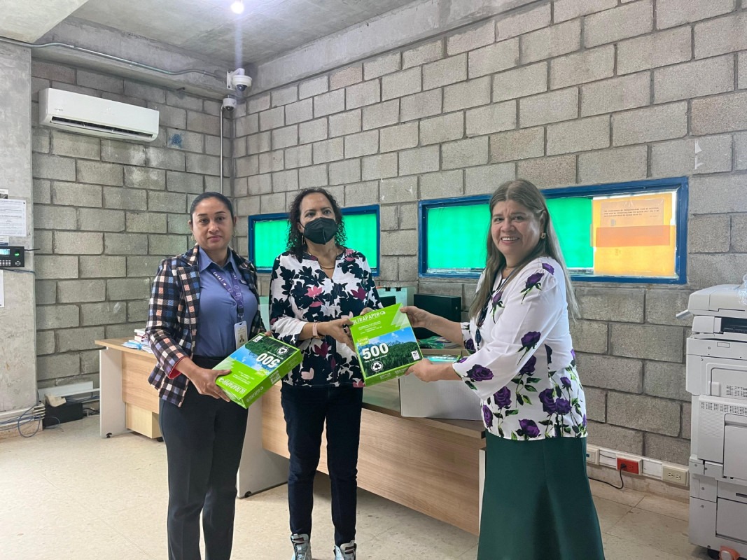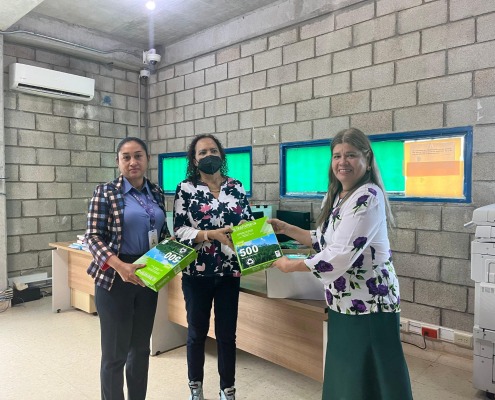 Adicional, la directora Jiménez entregó insumos de trabajo al personal administrativo y técnico del Complejo Penitenciario La Joya; recorrió las áreas utilizadas para educación y la formación en cursos, entre otras actividades.