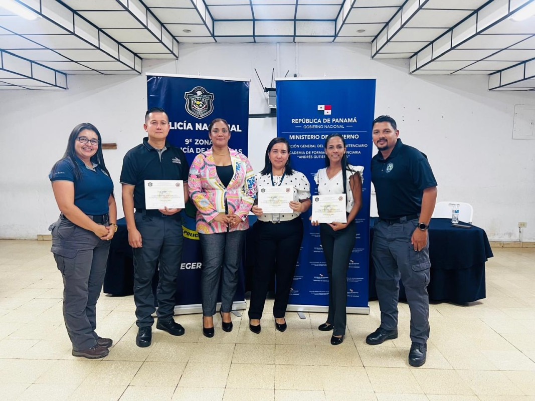 Coclé, 24 de abril de 2024. – Docentes de la Academia de Formación Penitenciaria Andrés Bonilla Gutiérrez (AFP) recibieron certificado de participación del VII curso de instructor en metodología de enseñanza de aprendizaje experiencial, dictado por el Centro de Capacitación y Especialización Policial, “General José Domingo Espinar” (CECAESPOL).