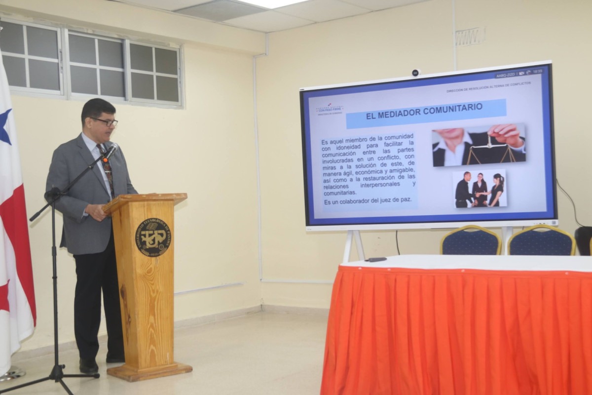 Panamá, 2 de octubre de 2024. Los avances, retos y propuestas en los métodos de resolución de conflictos en Panamá, fueron abordados por la Dirección de Resolución Alterna de Conflictos (DRAC), durante un foro temático realizado por la Universidad Tecnológica de Panamá, en conmemoración de los 25 años de la aprobación de la Ley 5 de 1999, que establece el Régimen General de Arbitraje de la Conciliación y de la Mediación.