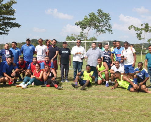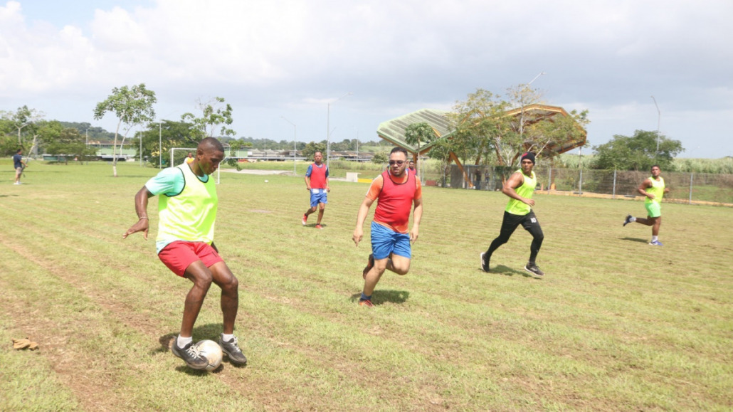Panamá, 10 de agosto de 2023. – Un partido amistoso de fútbol entre un equipo conformado por privados de libertad que participan en los programas de resocialización “Extramuro” de los centros El Renacer y Tinajitas y el onceno de Merca Panamá se realizó con el fin de fortalecer los valores por medio del deporte y la sana convivencia, donde los reclusos vencieron 5 a 0 a los mercadistas.