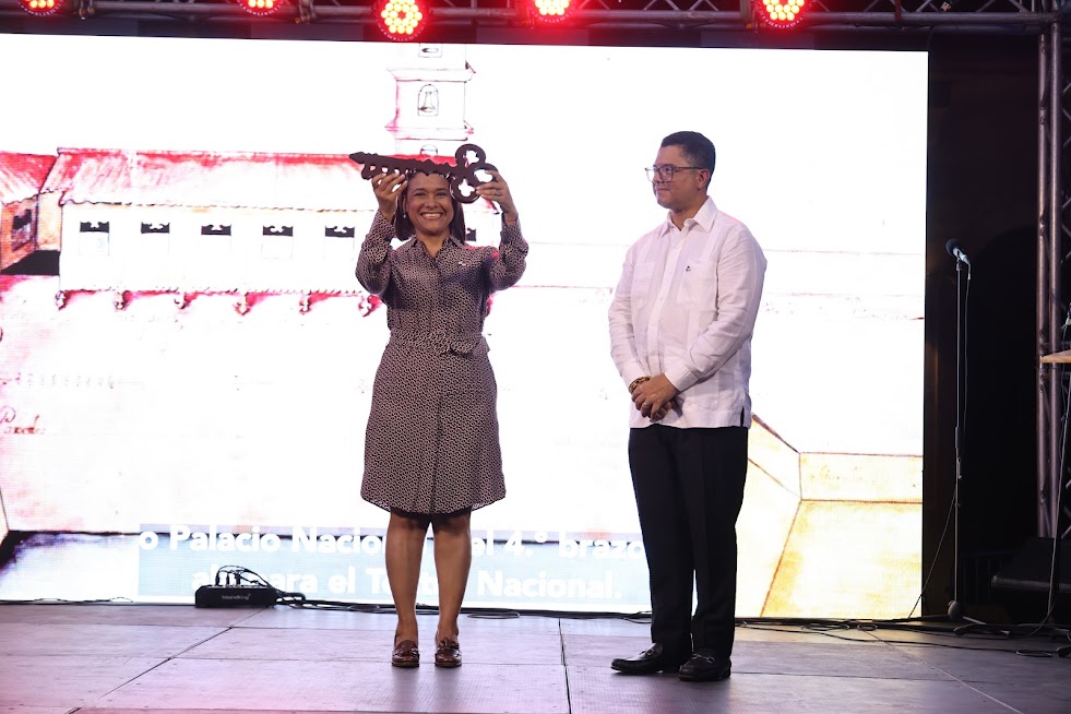 El titular de Gobierno, agregó que con esta intención y con visión de futuro entregó simbólicamente las llaves del Palacio Nacional a la señora ministra de Cultura, Giselle González Villarrué.