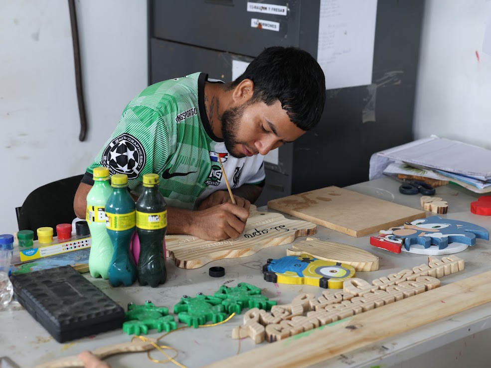 Este taller ofrece a las personas privadas de libertad un enfoque de rehabilitación y el aprendizaje de un oficio manual, potenciando su creatividad y el manejo de herramientas a través de la capacitación laboral.