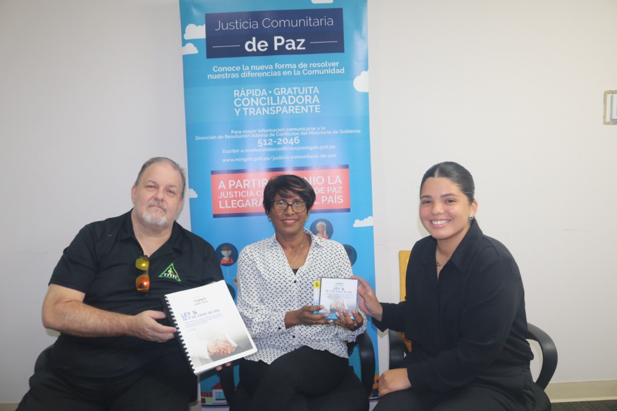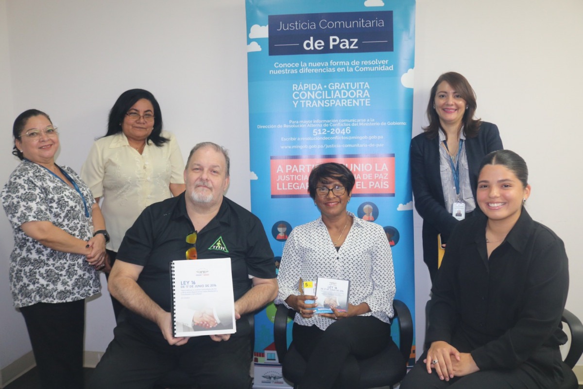Panamá, 23 de enero de 2024. La Dirección de Resolución Alterna de Conflictos (DRAC) del Ministerio de Gobierno (Mingob) entregó un ejemplar de la Ley 16 que instituye la Justicia Comunitaria de Paz, a la Asociación de Baja Visión de Panamá y la Secretaría de Equidad de Género de la Unión Latinoamericana de Ciegos (ULAC).