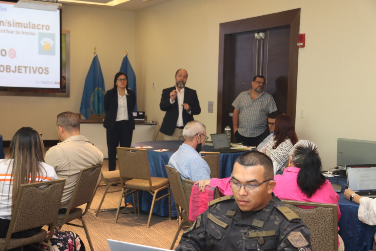 Panamá, 3 de mayo de 2023. Equipos Excon de los países integrantes del SICA y República Dominicana, que participáran del III Simulaco Regional de Asistencia Humanitaria, que se realizará en Panamá del 13 al 16 de junio, participan de un seminario-taller que tiene como objetivo integrar, sincronizar e ingresar los guiones en la plataforma SIMEXamericas para la realización de este ejercicio regional donde se pondrán a pruebas las capacidades, técnicas, logísticas y operativas de los equipo de respuesta ante desastres.