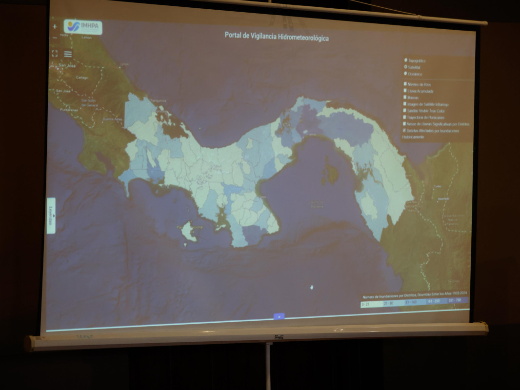 La ministra se refirió al nuevo Portal de Vigilancia Hidrometeorológica por distrito, presentado por el Instituto de Meteorología e Hidrología de Panamá (IMPHA), el cual permitirá mejorar la precisión de las alertas emitidas por Sinaproc ante eventos de lluvia.