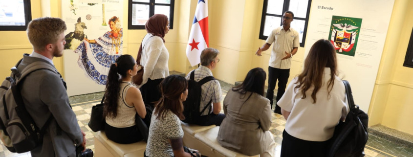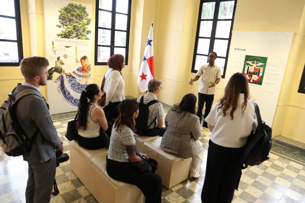 Panamá, 27 de junio de 2025.- Conocer a viva voz de la historia, cultura y observar las confecciones de la prendas de vestir de los pueblos indígenas de Panamá, fue lo que apreciaron un grupo de estudiantes de la Universidad de Westminster de Londres en Reino Unido, durante una visita realizada por el Museo de la Mola (MuMo) y al Palacio de Gobierno, ubicados en el Casco Antiguo.