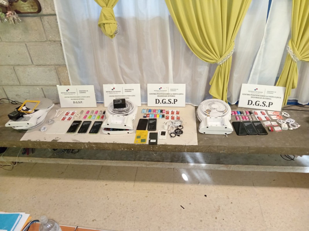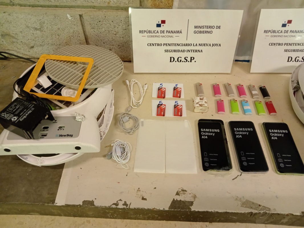 Panamá, 22 de enero de 2024. – Tres mujeres visitantes fueron sorprendidas en la revisión de rutina en La Nueva Joya, tratando de ingresar ocho celulares, encendedores, hojas de afeitar, pantallas de celulares, cabezotes de cargador, audífonos, “router”, entre otros artículos prohibidos, dentro de abanicos solares.