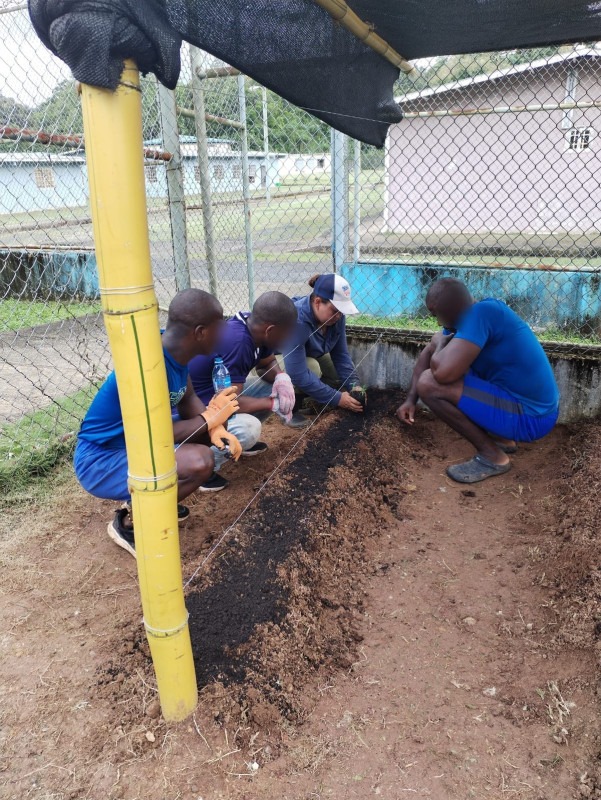 Colón, 6 de diciembre de 2023. – Una exitosa siembra de 170 plantones de pepino realizaron los jóvenes del Centro de Custodia y Cumplimiento Basilio Lakas (CCCBL) de la provincia de Colón, fortaleciendo el proyecto de autogestión “Granja el Buen Pastor” implementado por el Instituto de Estudios Interdisciplinarios (IEI) en base a la Ley 40 del Régimen Especial de Responsabilidad Penal para la Adolescencia.