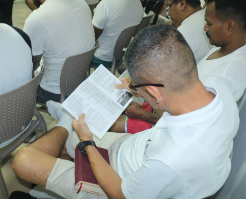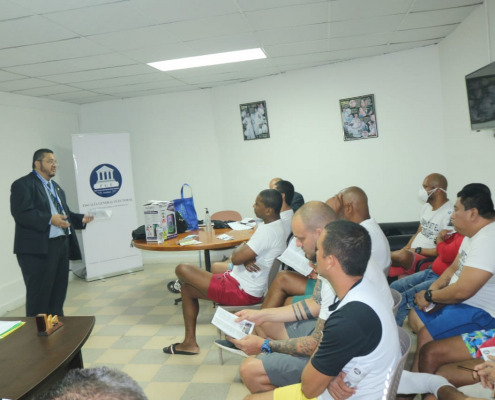 Panamá, 27 de abril de 2023. – Una capacitación electoral se llevó a cabo en el centro de detención Tinajitas, con la finalidad que las personas privadas de libertad tengan acceso a información de lo que permite la ley en las próximas elecciones nacionales del 2024, charla que dictaron expertos de la Fiscalía General Electoral, actividad coordinada con el Ministerio Carcelario de Hosanna y la Dirección General del Sistema Penitenciario (DGSP).