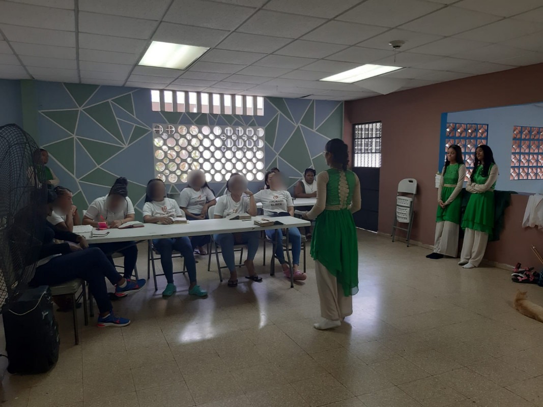 Motivando la renovación interior para optimizar el cambio de conducta de las jóvenes privadas de libertad, la actividad realizada bajo el renglón de Compañía Espiritual del Eje de Competencias Ciudadanas del Modelo de Intervención Integral implementado por el IEI, Dependencia del Ministerio de Gobierno (MINGOB) para la resocialización de los jóvenes en conflicto con la Ley Penal, utilizó prédicas, lecturas bíblicas, danzas, oraciones y testimonios para tal fin.