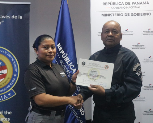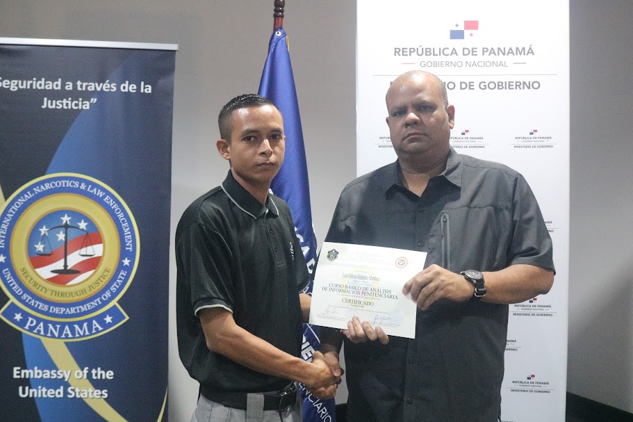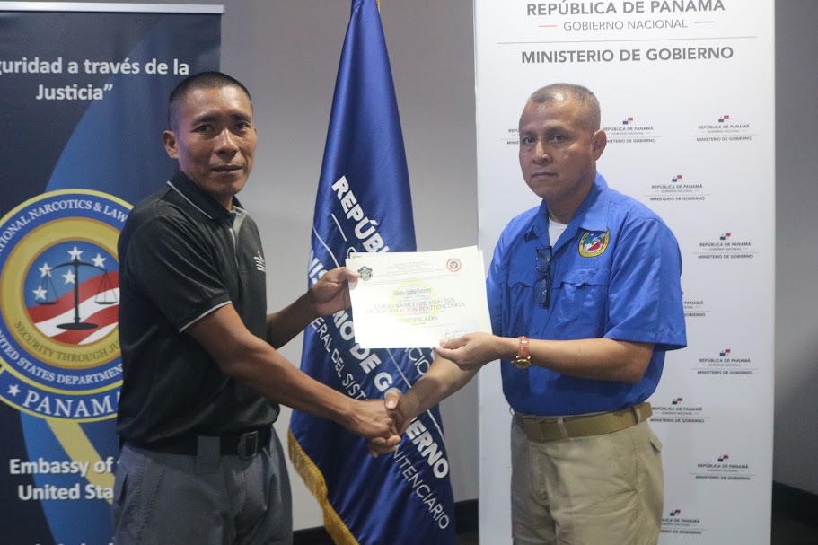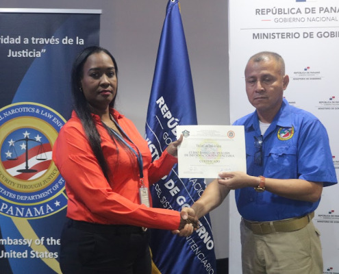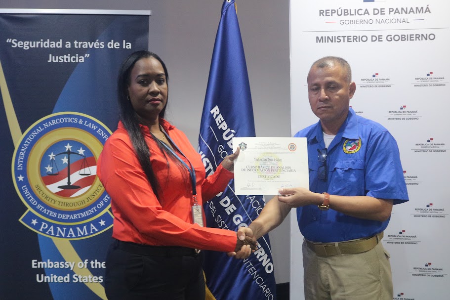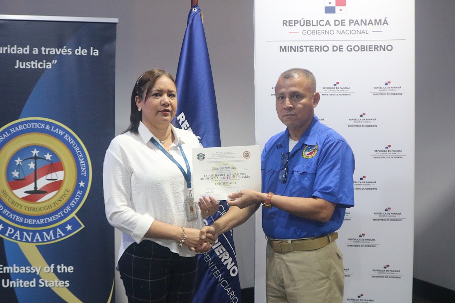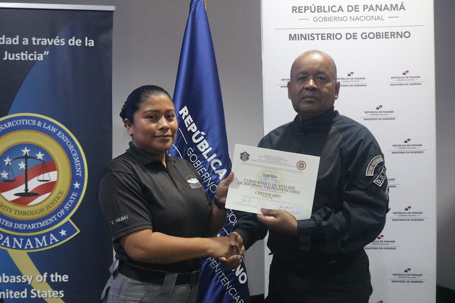 Panamá, 27 de junio de 2024. – La Dirección General del Sistema Penitenciario (DGSP) dependencia del Ministerio de Gobierno (Mingob), creó el Grupo de Inteligencia de Análisis Penitenciario (GIAP), unidad que será integrada por la primera promoción del curso básico de análisis de información penitenciaria dictado por la Policía Nacional, con el auspicio de la Oficina Internacional de Asistencia Antinarcóticos y Cumplimiento de la Ley (INL por sus siglas en inglés) de la embajada de Estados Unidos de América en Panamá.