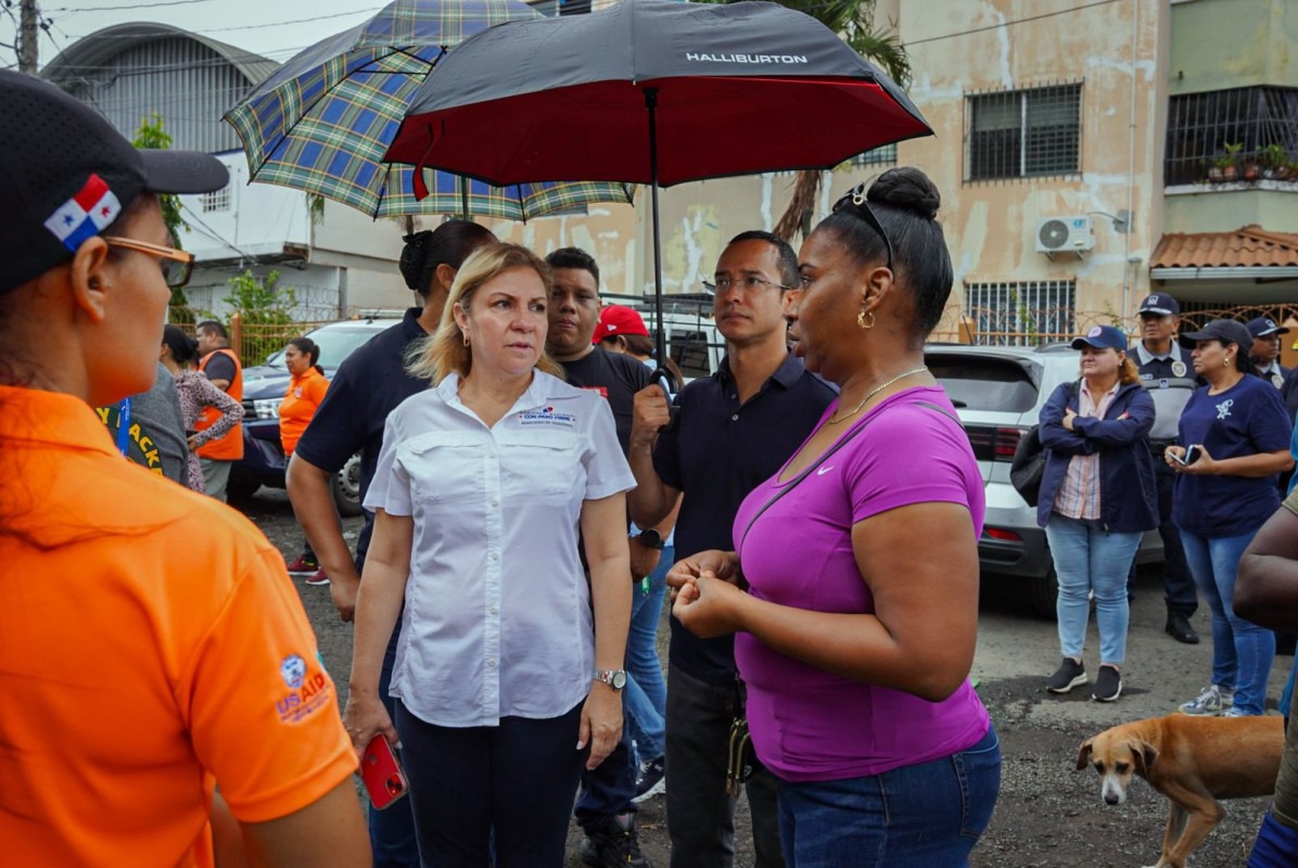 Panamá, 23 de septiembre de 2024. La ministra de Gobierno, Dinoska Montalvo, encabezó la delegación gubernamental  que este domingo atendió a los afectados por el incendio de un caseron en calle 15 del corregimiento de Parque Lefevre.