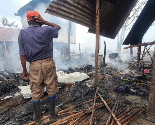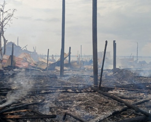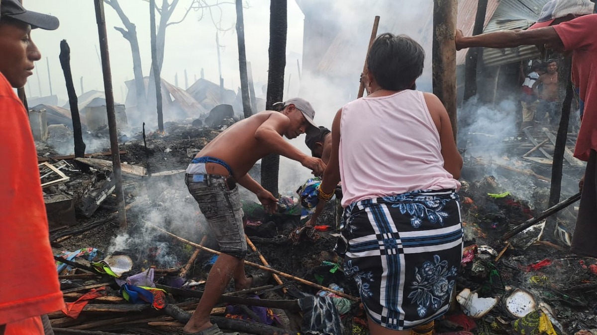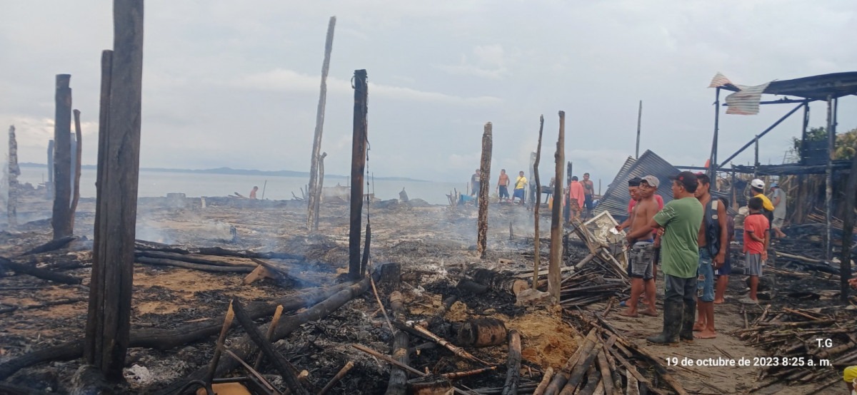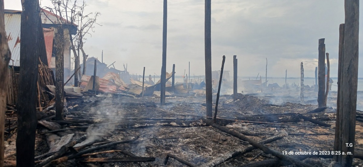 Panamá, 19 de octubre de 2023. Al menos unas 101 personas y 12 casas fueron afectadas por el incendio que ocurrió la madrugada de este jueves en la comunidad de Naranjo Chico, en la comarca Guna Yala.