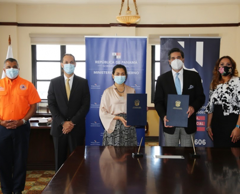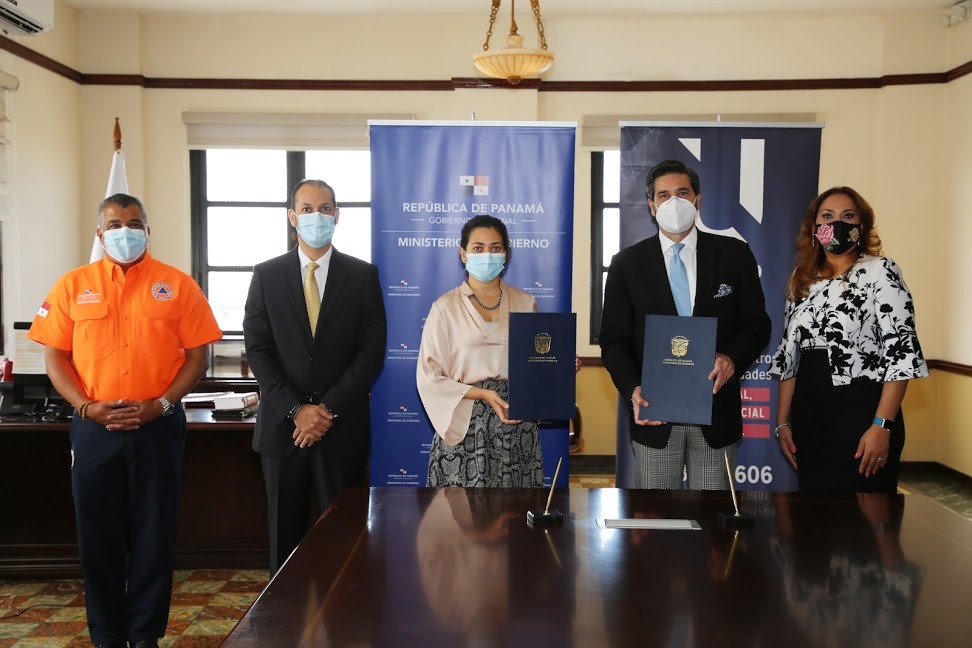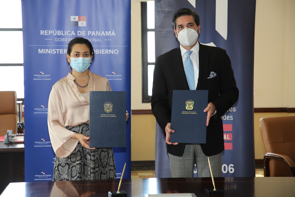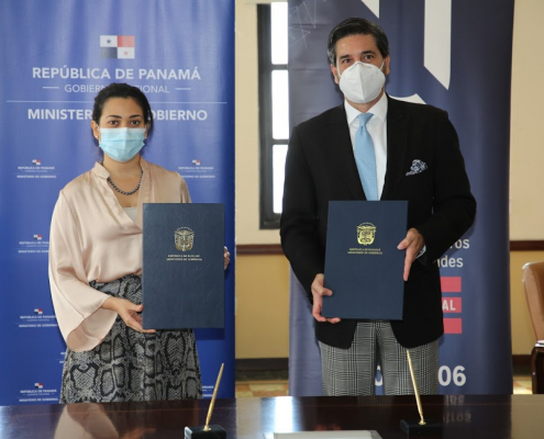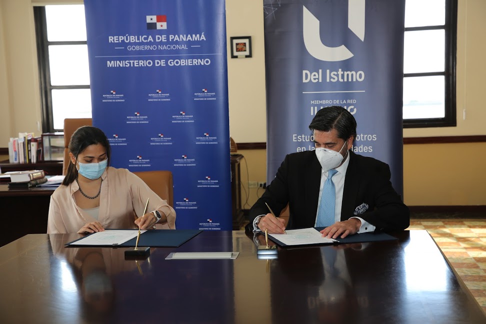 Panamá, 7 de mayo de 2021. Desarrollar actividades de enseñanza–aprendizaje en las áreas de logística de manejo de desastres y asistencia humanitaria, es parte del acuerdo de Cooperación Académica, Técnica y Científica firmado por la ministra de Gobierno, Janaina Tewaney Mencomo, y el rector de la U del Istmo, Juan Fernando Montañez.