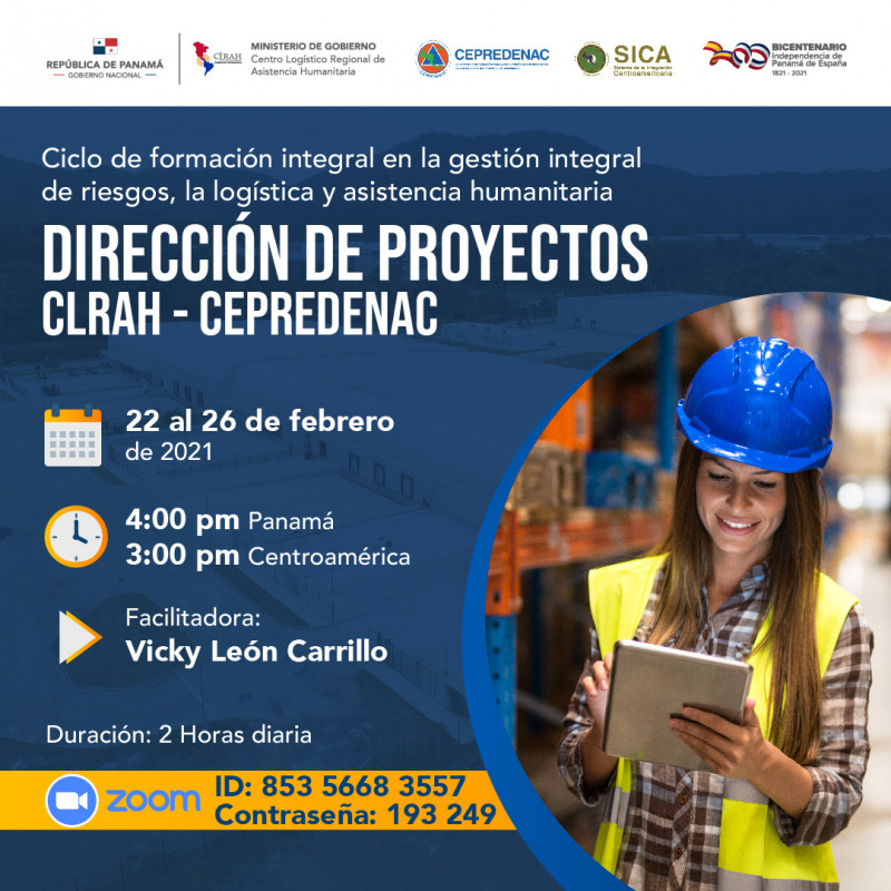 Tercera actividad diseñada para el 22 de febrero, en horario de 4:00 p.m. a 6:00 p.m. (hora de Panamá), con enfoque multisectorial en la logística y asistencia humanitaria; así como en la gestión integrada de riesgo de desastres.  Este evento contempla la participación de 30 a 50 personas. con Certificación incluida, solo participaran por invitación y listado oficial por el CLRAH y CEPREDENAC.