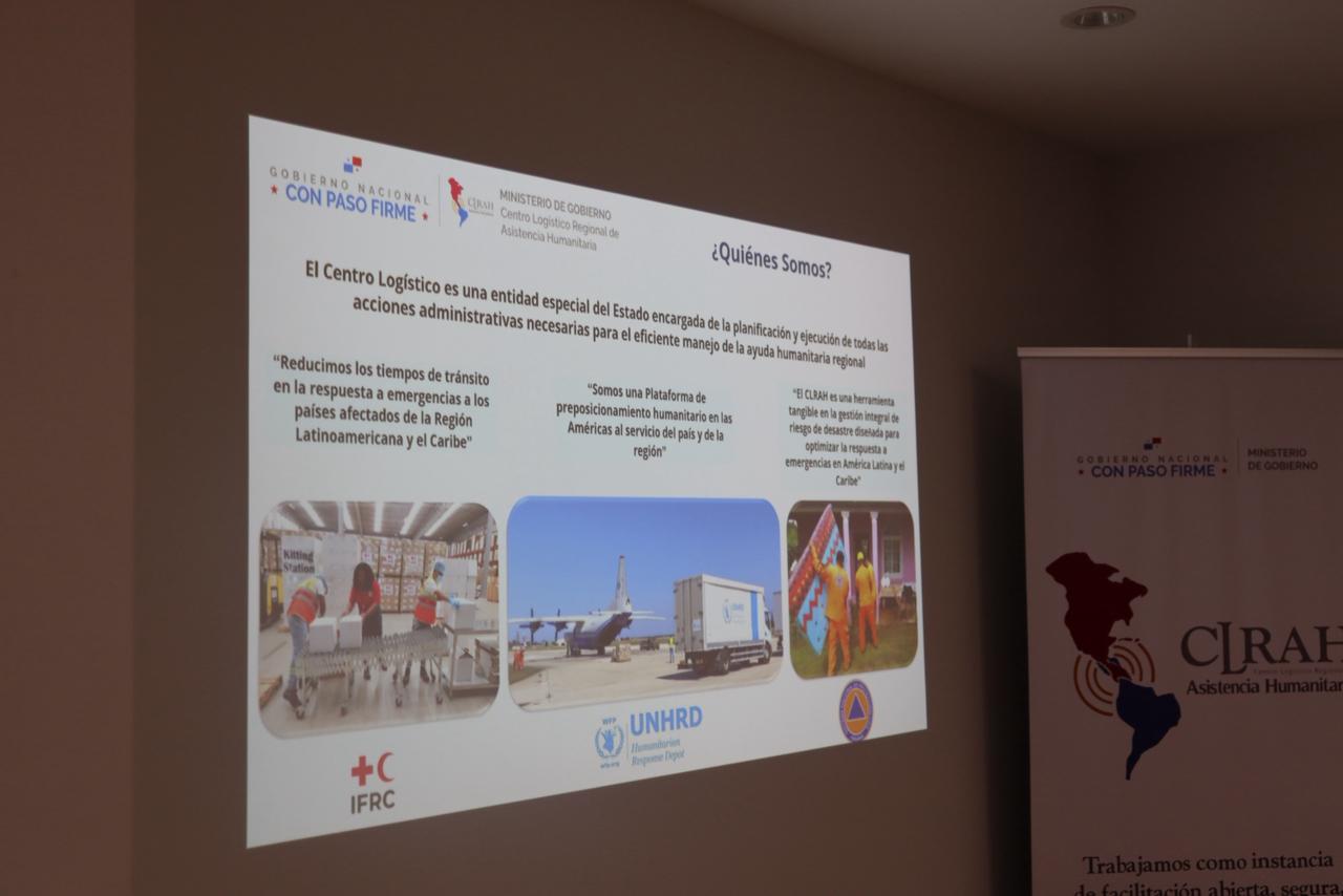 Las palabras de bienvenida estuvieron a cargo del viceministro de Gobierno, Juan Francisco Borrell, quien destacó la posición geográfica estratégica de Panamá y el rol del CLRAH para facilitar una respuesta humanitaria oportuna y eficiente en las Américas. Posteriormente, la directora ejecutiva del centro, Holda Álvarez de Marré, presentó las capacidades del CLRAH como plataforma logística y de servicios humanitarios, resaltando el valor estratégico que representa el Hub Humanitario al servicio de la región y del país.