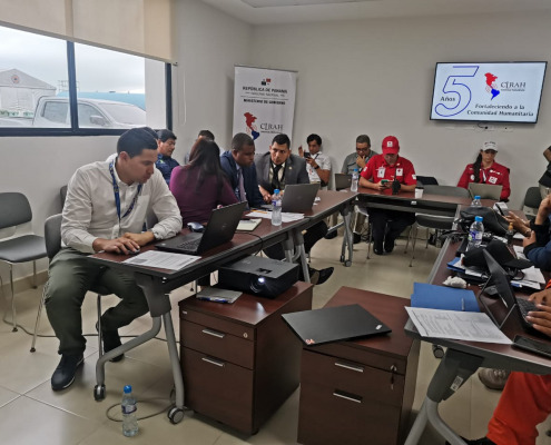 Panamá, 26 de junio de 2023. Como parte del III Simulacro Regional de Respuesta a Desastres y Asistencia Humanitaria Panamá 2023 desarrollado recientemente en Panamá, el Centro de Coordinación de Asistencia Humanitaria (CCAH) realizó un ejercicio de activación, resultado del llamamiento de Asistencia Internacional.