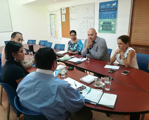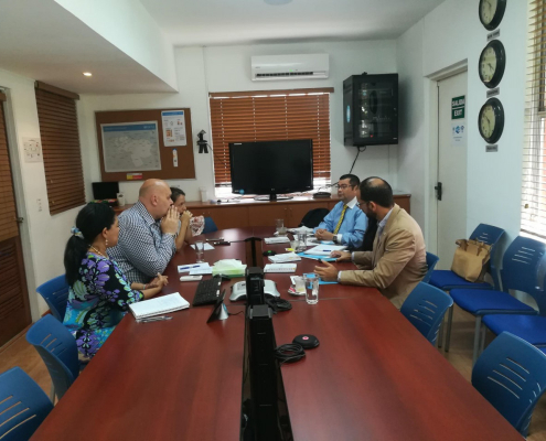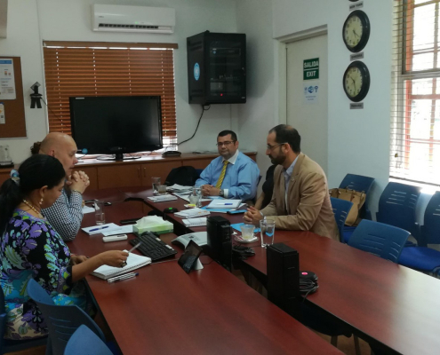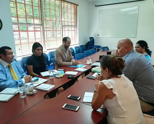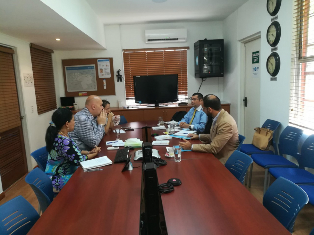 En esta reunión, Sierra, estuvo acompañado de la ingeniera Melissa Sánchez, Coordinadora de Logística y de Rafael Bonilla, Oficial de Cooperación y Coordinador del Centro de Transferencia de Conocimiento del Centro Logístico Regional de Asistencia Humanitaria.