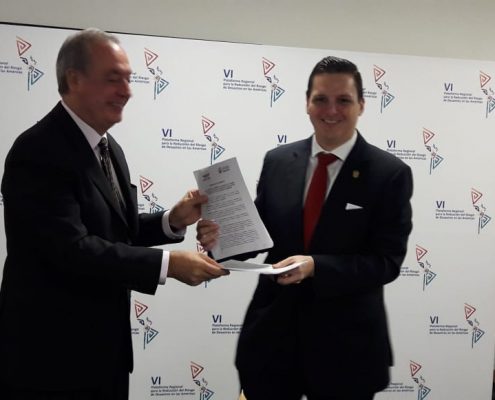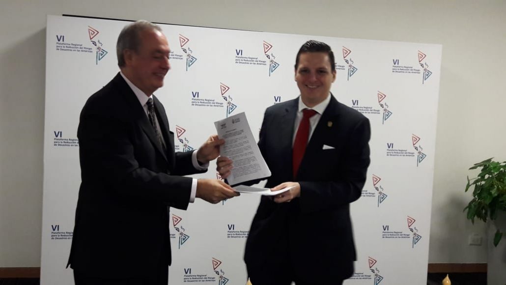 La firma del acuerdo se dio durante la VI Plataforma Regional para la reducción del Riesgo de Desastres en las Américas, celebrado en Cartagena de Indias, Colombia.