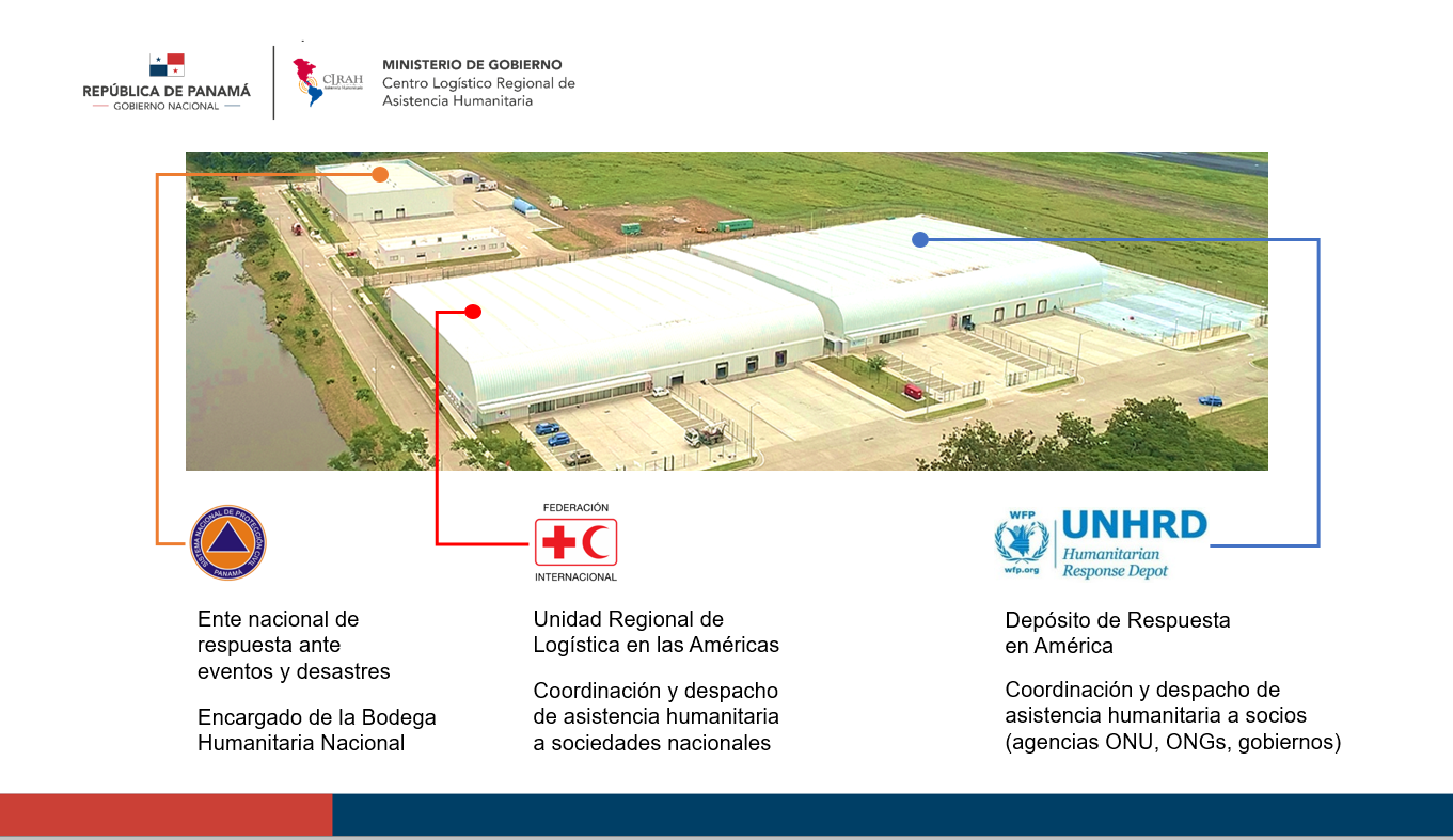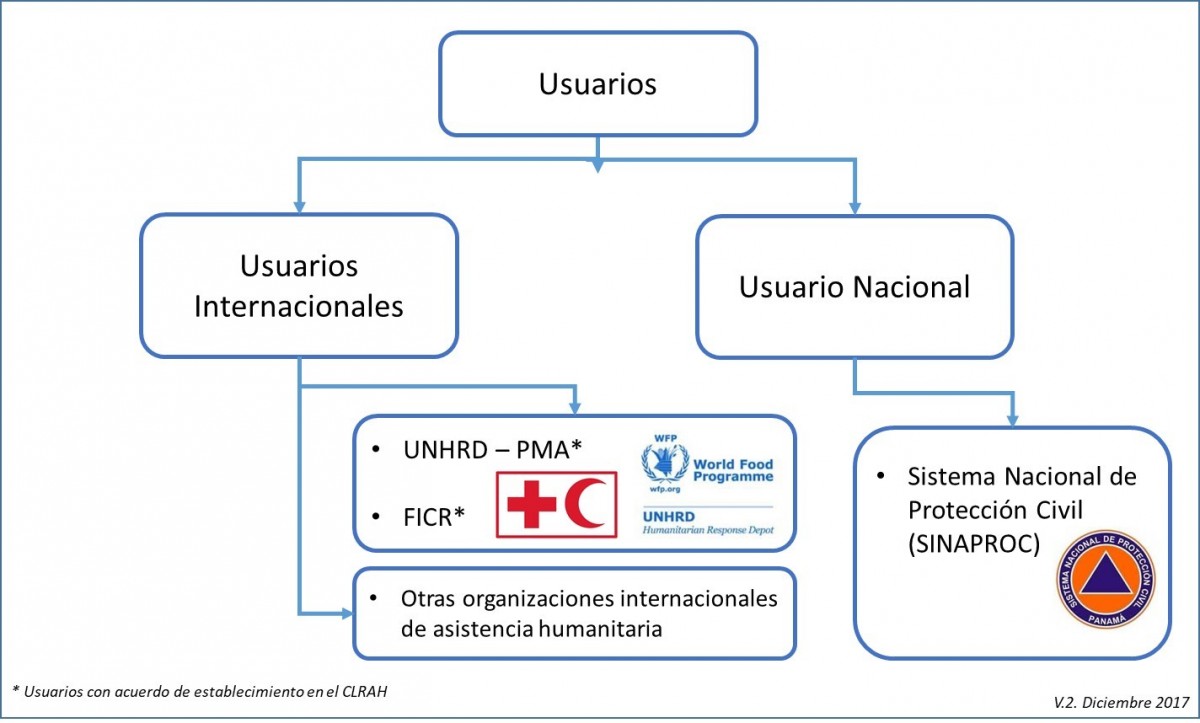Un grupo de tres instancias constituyen los usuarios iniciales de las instalaciones del CLRAH: dos de carácter internacional y uno nacional. Éstos son el Depósito de Respuesta Humanitaria de las Naciones Unidas (UNHRD) del Programa Mundial de Alimentos (PMA), la Federación Internacional de la Cruz Roja y la Media Luna Roja (FIRC) y el Sistema Nacional de Protección Civil (SINAPROC).