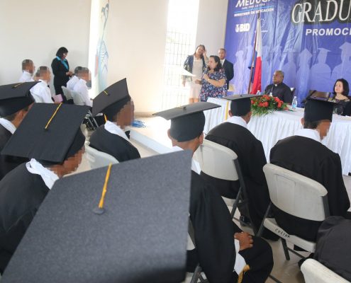 Este acto de graduación contó con la presencia de la viceministra de Gobierno encargada, Maritza Royo, quien los felicitó por haber logrado obtener su diploma, que representa un triunfo y una herramienta con la que ellos no contaban.