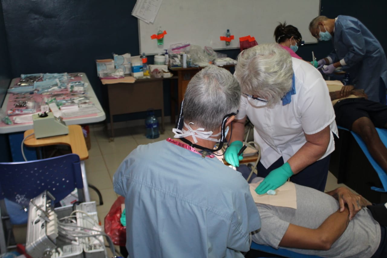 El equipo médico estaba conformado por odontólogos, especialistas en odontología y cuatro técnicos de esterilización, todos procedentes de Estados Unidos, quienes trajeron el equipo completo de odontología, con mobiliario, instrumentos y esterilizadores, que cumplen con todas las normas higiénicas.