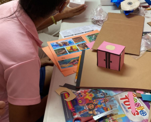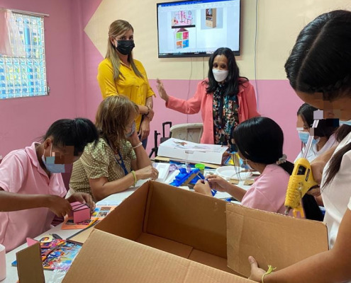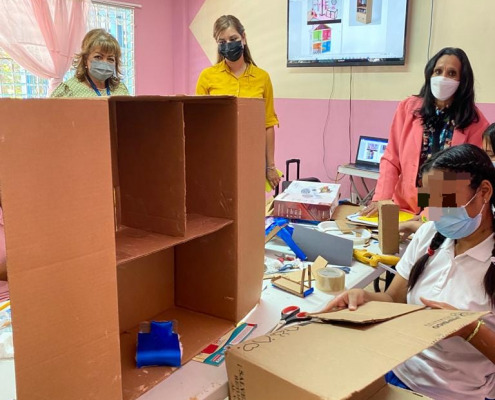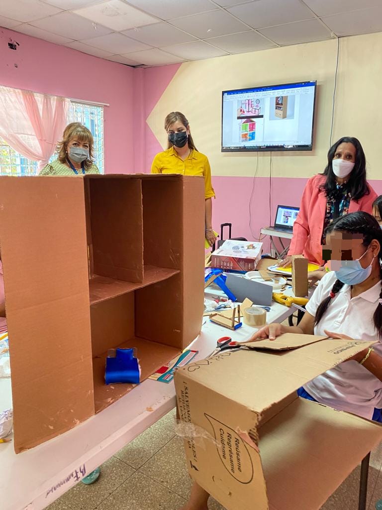 “En esta etapa de la capacitación se dio la oportunidad para que las jóvenes aplicaran sus inteligencias múltiples, creatividad e inventiva, mediante la elaboración de la casa y muebles, para lo cual se inspiraron en los personajes de las historietas infantiles “Barbie”, “Frozen”, “Moana” y “Princess”, utilizando la tecnología para buscar el modelo que deseaban materializar, pero sobre todo incentivando la práctica del reciclaje”, indicó Dilcia Esther Valdés, facilitadora del curso del Instituto de Estudios Interdisciplinarios (IEI).