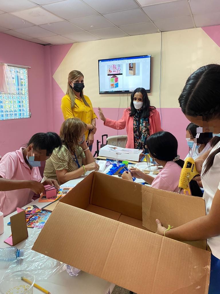 Las internas aprendieron la estrategia de transformar desechos sólidos “basura” como cartón, plásticos, papel entre otros, en materia prima económica y accesible para la elaboración de lindas casas de muñecas que son un juguete costoso en el mercado, de difícil acceso para las personas de escasos recursos y que ahora podrán diseñar para regalar a sus hermanas o sobrinas en cumpleaños, navidad o cualquier otra ocasión especial; también, efectuaron lapiceros, flores decorativas, monopolios y fichas de dominós.