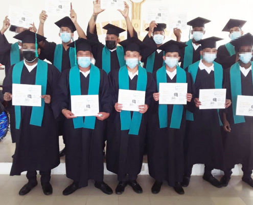 En cuanto a los cursos ofrecidos 50 se han graduado en diferentes modalidades; 20, del Basilio Lakas en cursos de electricidad, albañilería, ahorro de energía, barbería, cocinero, soldador, técnico minero y reparación de aires acondicionados y más de 100 se han capacitado con el apoyo de alianzas con ONGs, e instituciones religiosas y gubernamentales.