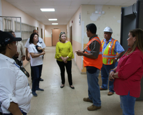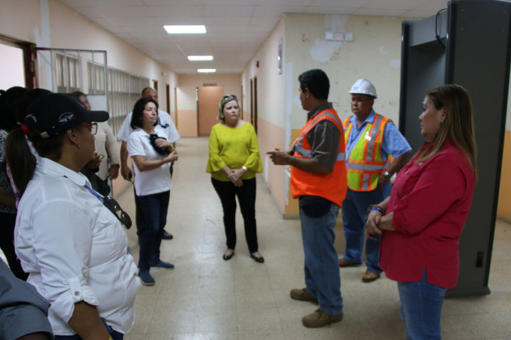 Posteriormente se trasladaron a Tocumen donde se inspeccionaron los trabajos de rehabilitación y mantenimiento que se realizan en el Centro de Custodia y Cumplimiento Residencia Femenina, próximos a finalizar. En este centro se efectúan trabajos eléctricos, pintura, cerrajería, adecuación de los edificios administrativos, dormitorios, talleres y aulas de clases, así como las áreas de custodios.