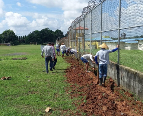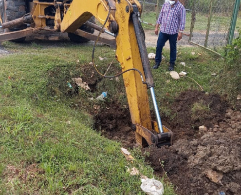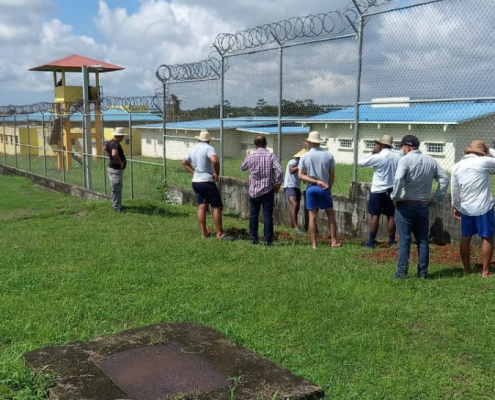 Panamá, 13 de octubre de 2021. Un grupo de diez jóvenes de la Fase de Reintegración Social y cuadrillas del Instituto de Acueductos y Alcantarillados Nacionales (Idaan) iniciaron los trabajos de excavación e instalación de tuberías para abastecer de agua potable al centro de Cumplimiento de Las Garzas, proyecto que adelanta la administración de la ministra de Gobierno, Janaina Tewaney Mencomo y que busca regularizar el suministro de agua potable a los centros penitenciarios.