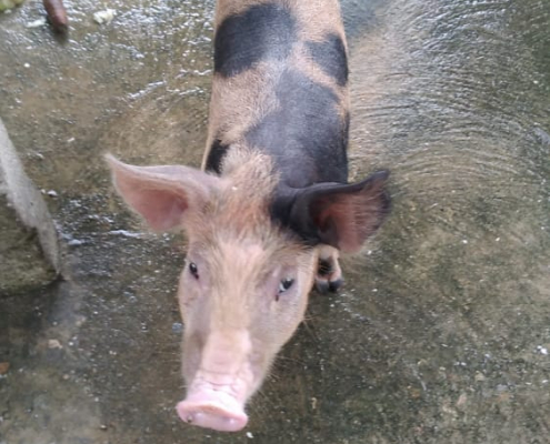 Panamá, 6 de septiembre de 2021. El Centro de Custodia y Cumplimiento Basilio Lakas de Colón recibió 230 pollos y una cerdita llamada “Pepa” para continuar con el proyecto avícola y dar inicio a la crianza de ganado porcino, enmarcados dentro de la reactivación de la “Granja El Buen Pastor”.
