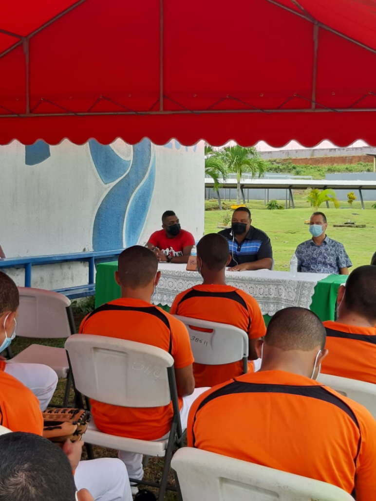 Panamá, 22 de agosto de 2021. “Aprovechen las oportunidades que todavía tienen, no sucumban ante la presión de grupo, aprendan a tomar sus propias decisiones”, fueron algunas de las palabras con las que Carlos Lee, gloria panameña del béisbol, utilizó para incentivar a los adolescentes en conflicto con la ley penal del Centro de Cumplimiento de Las Garzas.