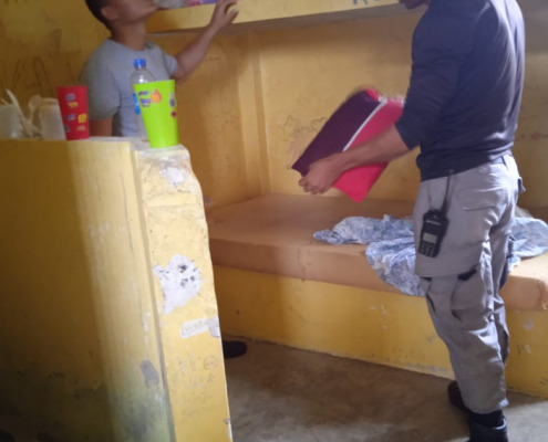 Panamá, 8 de agosto de 2022. – Dos envoltorios con forma de cigarrillos y una bolsita de plástico transparente con hierba seca, presumiblemente marihuana, fueron el resultado de la requisa de seguimiento efectuada en la Fase de Acogida…
