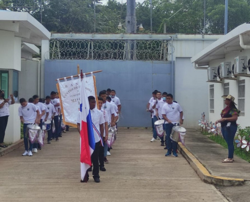 Herrera, 18 de noviembre de 2022. Los jóvenes en conflicto con la Ley Penal del Centro de Custodia y Cumplimiento de Herrera (CCCH),llevando en alto el pabellón tricolor, rindieron honor a la patria con el objetivo de mantener vivo el espíritu…