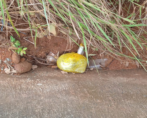 Panamá, 7 de octubre 2022. Un envoltorio forrado en papel plástico y cubierto con una maya amarilla que contenía en su interior tres cajetas de cigarrillos, un encendedor y varias piedras para generar peso fue lanzado por un dron cercano…