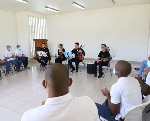 Panamá, 26 de septiembre de 2022. Atraídos por las melodiosas notas de los violines, la viola y el bajo, doce jóvenes del Centro de Custodia y Cumplimiento Basilio Lakas (CCCBL) de la provincia de Colón, participaron del primer concierto…