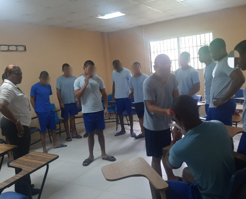 Colón, 15 de enero de 2024. – Con reflexiones del Capítulo 5 Versículos del 16 al 22 de la carta a los Gálatas, 15 jóvenes del Centro de Custodia y Cumplimiento Basilio Lakas (CCCBL) de la provincia de Colón, participaron del Circulo de Lecturas Bíblicas enmarcado en el Eje de Compañía Espiritual del Modelo de Intervención Integral pilar del Instituto de Estudios Interdisciplinarios (IEI) para la resocialización.