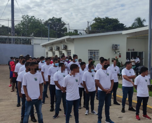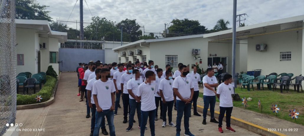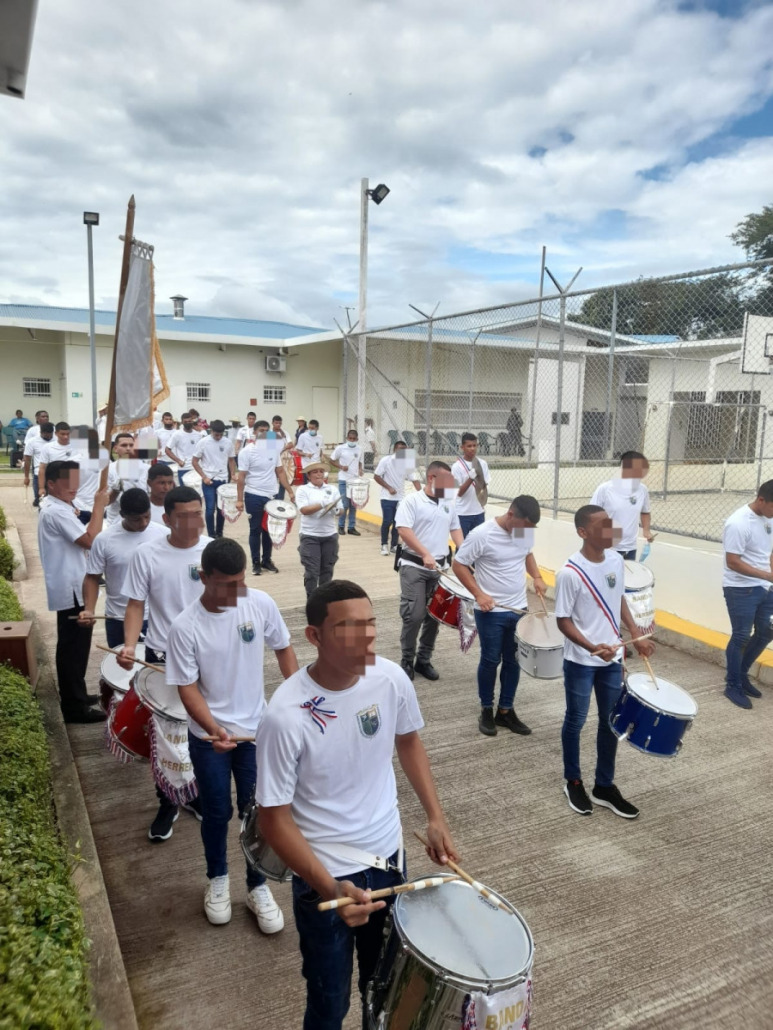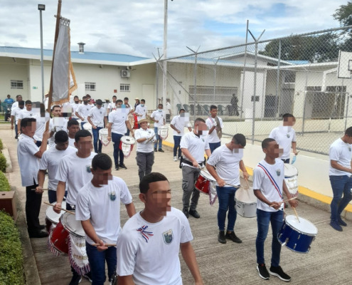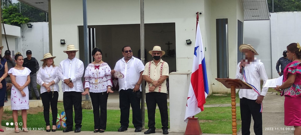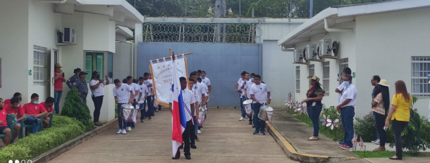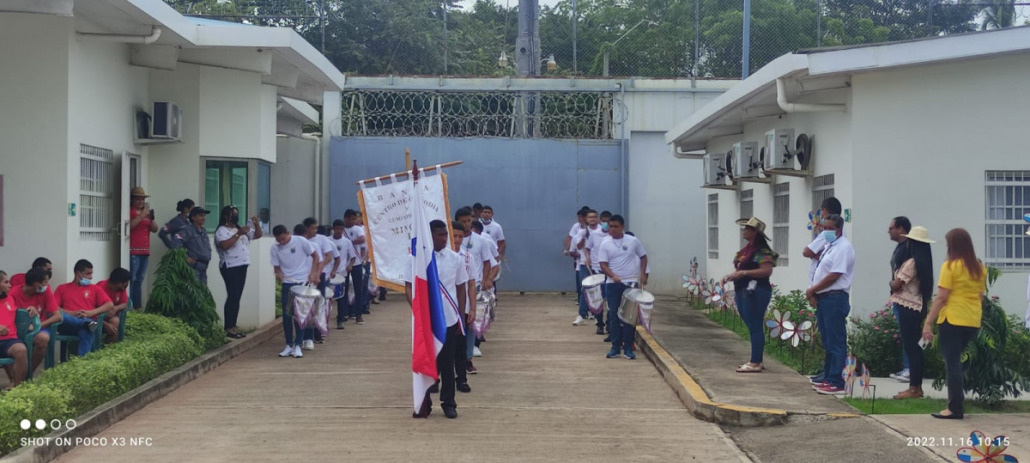 Herrera, 18 de noviembre de 2022. Los jóvenes en conflicto con la Ley Penal del Centro de Custodia y Cumplimiento de Herrera (CCCH),llevando en alto el pabellón tricolor, rindieron honor a la patria con el objetivo de mantener vivo el espíritu patriótico y resaltar el valor de los símbolos patrios.