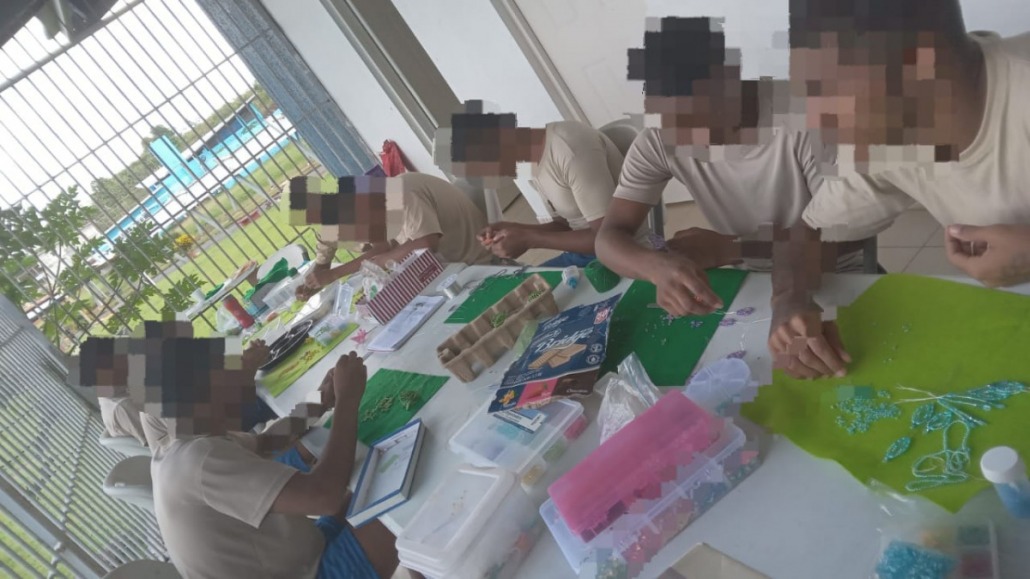 Panamá, 11 de enero de 2024.- Un grupo de 15 adolescentes del Centro de Cumplimiento de Las Garzas (CCLG) inició el Taller de Elaboración de Tembleques, implementado por el Instituto de Estudios Interdisciplinarios (IEI), en alianza con el Instituto Nacional de Formación Profesional y Capacitación para el Desarrollo Humano (INADEH) garantizando la capacitación laboral de los jóvenes en conflicto con la Ley Penal.