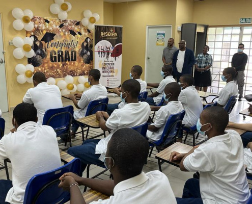 Panamá, 27 de diciembre de 2022. – “Cambiando Vidas”, es el título del programa enfocado en liderazgo y potencial humano del cual 23 jóvenes colonenses del Centro de Custodia y Cumplimiento Basilio Lakas (CCCBL) se graduaron recibiendo sus certificados avalados por el Instituto Superior Bíblico Panameño (INSBIPA) bajo la cobertura de la iglesia Evangelio Completo.