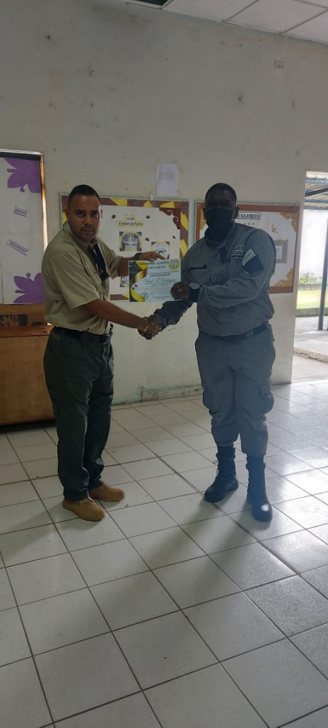 Panamá, 3 de enero de 2023. – Actualizar y mantener capacitado al equipo de custodios ante realidades suscitadas o posibles para reducir riesgos que pudieran generar pérdidas físicas o materiales y a la vez fortalecer la memoria muscular activa en los procedimientos y técnicas de seguridad, es el objetivo del primer taller “Perfeccionando la Seguridad Penitenciaria”, realizado en el Centro de Custodia de Arco Iris (CCAI) bajo la organización del Instituto de Estudios Interdisciplinarios (IEI) y la Empresa Training Center Security.