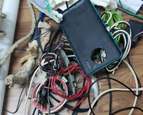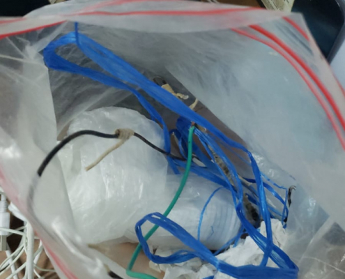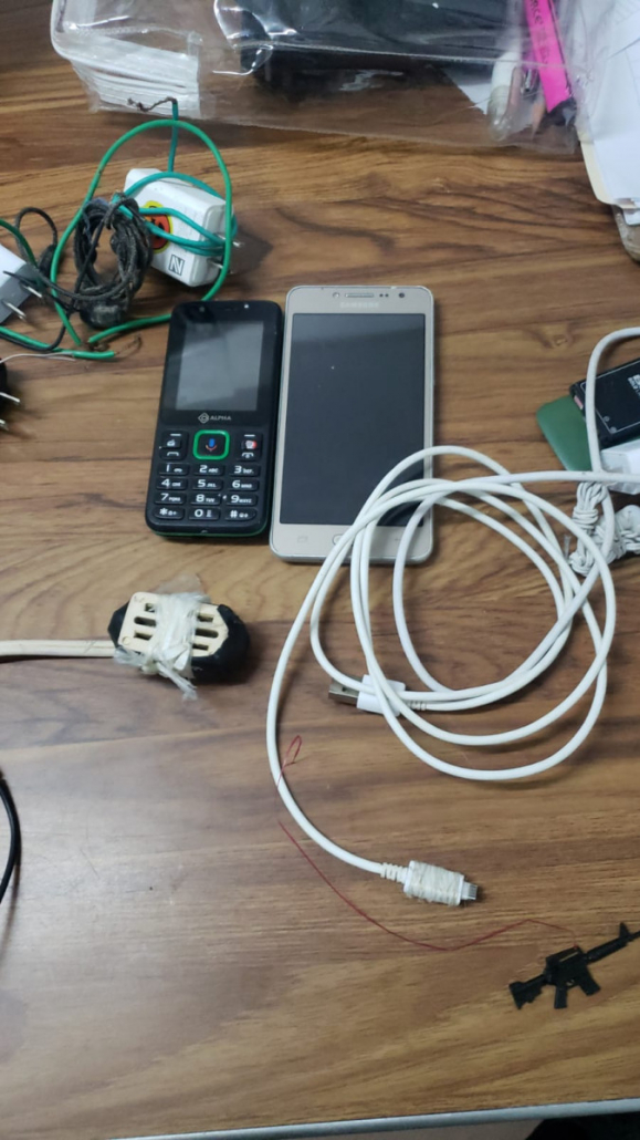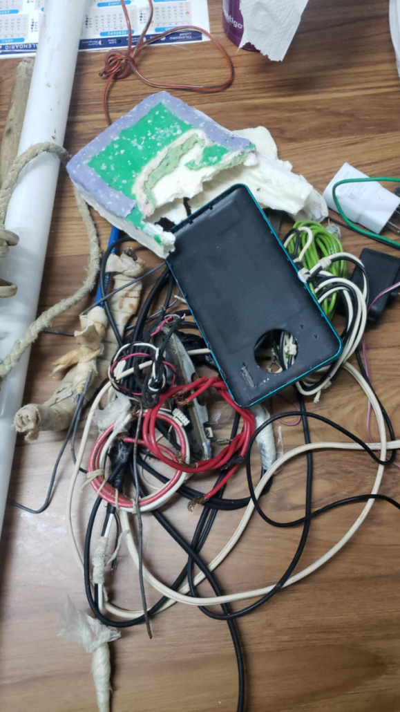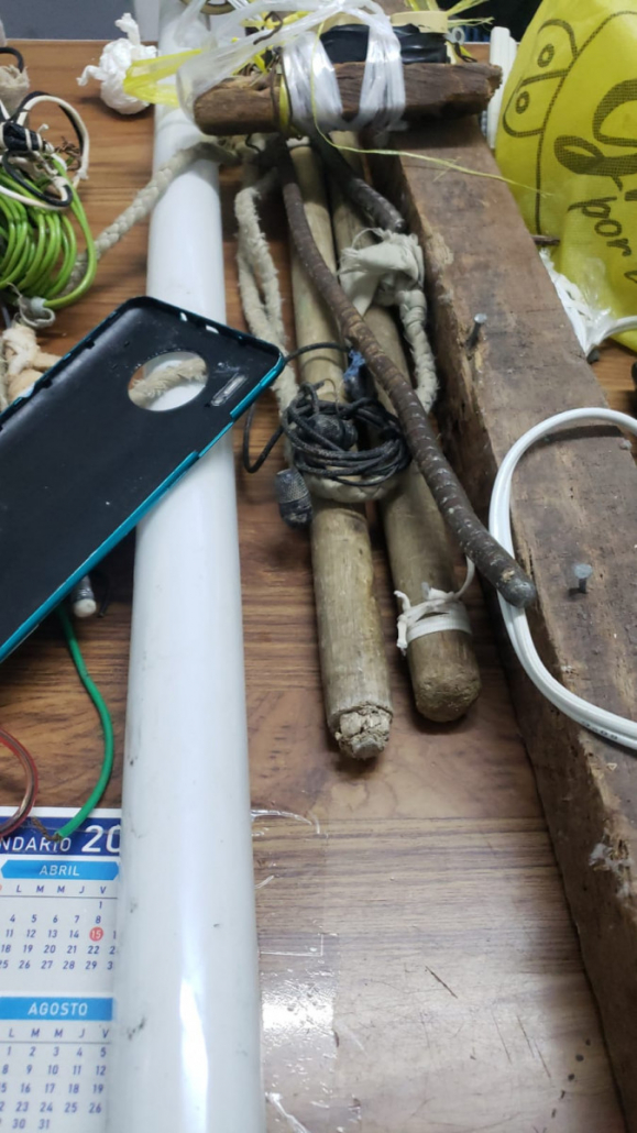 Chiriquí, 3 de junio de 2022. Celulares, cargadores, cables, palos, varillas de hierro, tubos de PVC, toma corrientes y un pedazo de madera con clavos incrustados, entre otras herramientas punzocortantes fueron encontrados en el Centro de Custodia y Cumplimiento Aurelio Granados Hijo de la provincia de Chiriquí (CCCAGH) como parte de las requisas regulares.