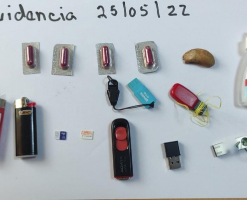 Cumpliendo con el Artículo 19 del Reglamento Interno que establece evitar el ingreso de sustancias ilícitas, objetos prohibidos y detectarlos para garantizar la seguridad del centro, el cuerpo de custodios del CCCH, en base al proceso de inspección rutinaria logró el decomiso de numerosos artículos ilegales tanto en los dormitorios como en el patio externo a las fases y el área de la cocina.